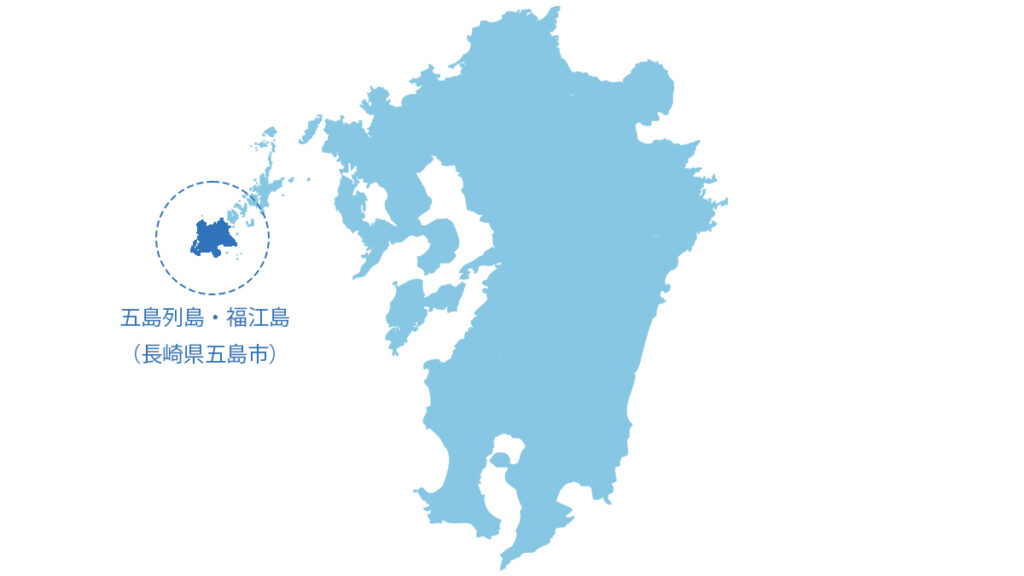 場所としては上図の通りで、九州・長崎県の西に約100kmの場所に位置しており、五島列島(北東側から中通島、若松島、奈留島、久賀島、福江島の5つの大きな島とその周辺の小さな島々からなる)の一部です。